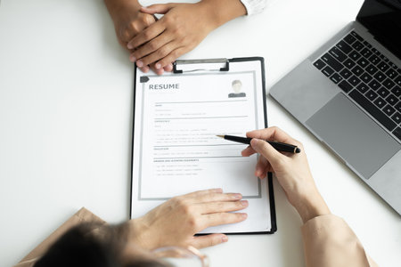 HR audit resume applicant paper and interview with using computer laptop for selection human resource to company.