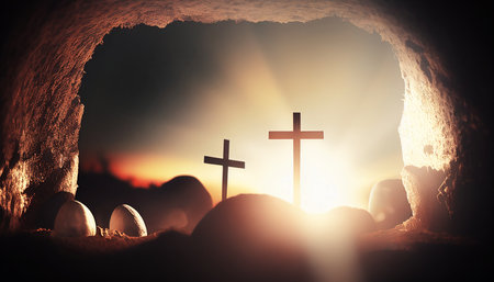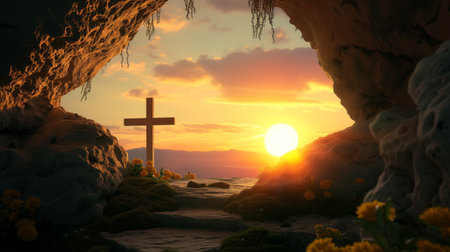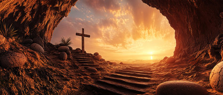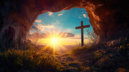 Resurrection Morning: The Empty Tomb of Christ at Sunrise, Symbolizing Easter's Promise