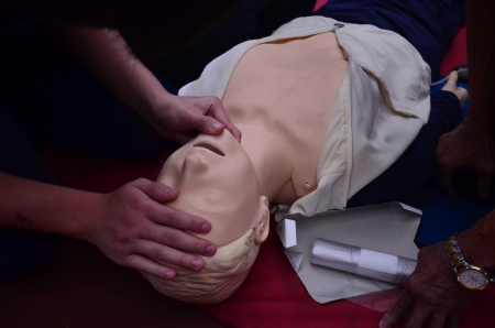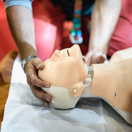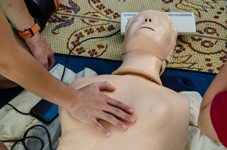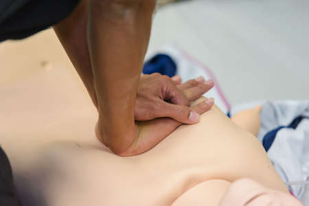 CPR training chest compressions for first aid in emergency.