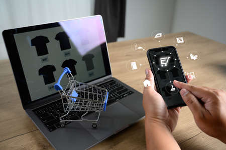 Business people use Technology E-commerce Internet Global Marketing Purchasing Plan and Bank E-commerce Concept