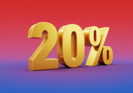 A vibrant image displaying a shiny, golden '20%' symbol against a gradient background. It conveys a sense of value, discount, or promotional offer, ideal for marketing or financial contexts.