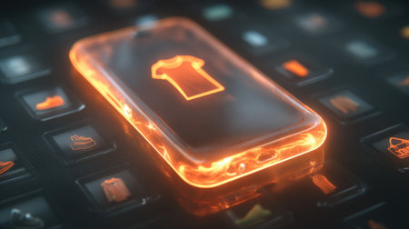 A smartphone displays a glowing shirt icon on its digital screen, representing the future of online shopping in fashion and highlighting modern consumer trends.