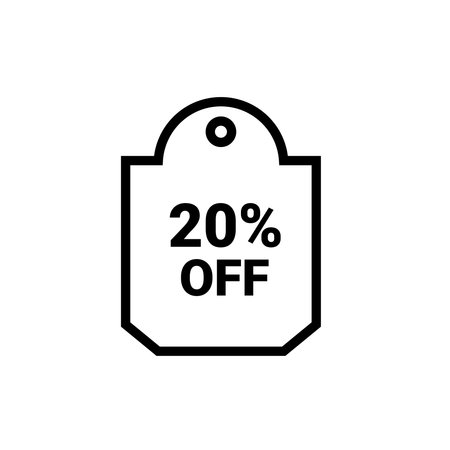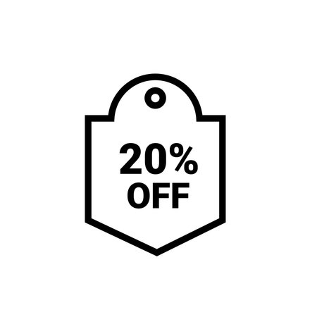 Twenty percent off discount or offer label vector promotion, flat red number 20 with price save percentage sign icon or banner modern simple emblem design
