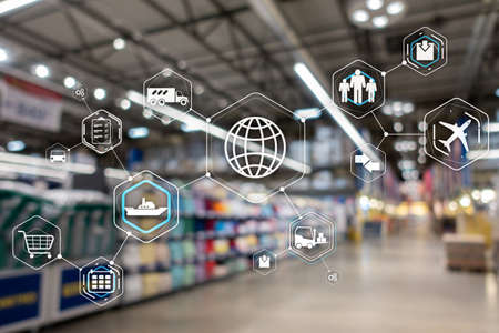Logistics and transportation concept on supermarket background.
