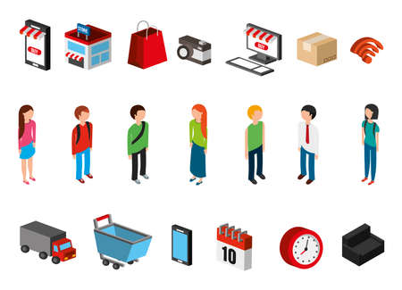 people and shopping online icons vector illustration design
