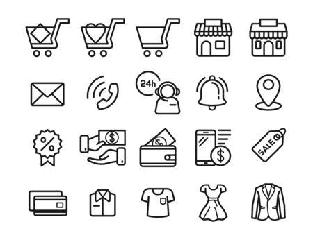 Illustrator vector of shopping line flat icon collection set