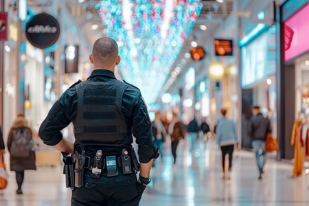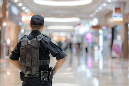 Security guard professional safety patrol man police employee mall safe business protect serve confident authority public space secure guarding agent staff shop convenience store grocery