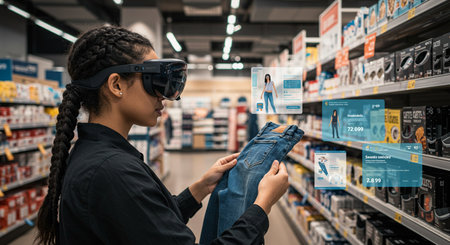 Enhanced retail experience virtual try ons and product overlays in a modern shopping environment