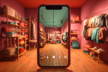 Fashion store interior in smartphone application. Shopping with augmented reality