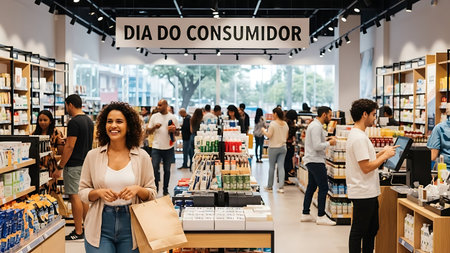 shoppers in a shopping mall, sense of happiness and excitement around shopping