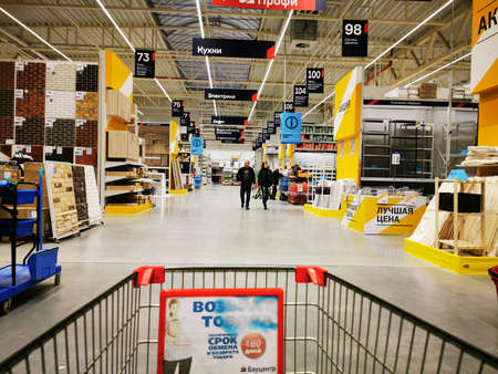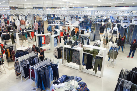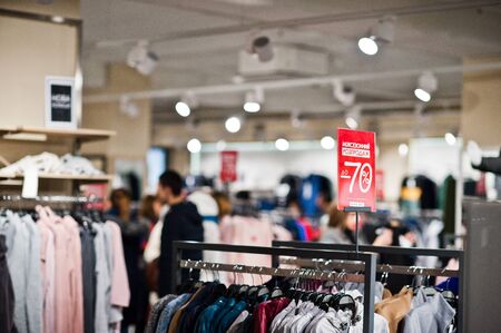 MOSCOW, RUSSIA - SEPTEMBER 14, 2019: interior shot of Colin's store at Salaris shopping mall in Moscow.