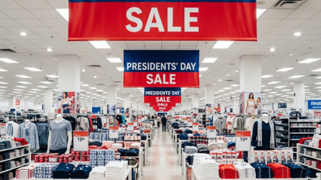 A crowded department store aisle in the capital city, filled with diverse customers browsing through racks of clothing and accessories.