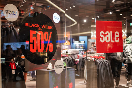Gdansk, Poland, November 28, 2025, discounts in a store in a shopping mall on Black Friday