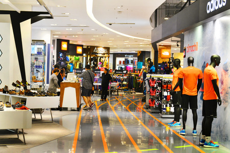 BANGKOK,THAILAND - June 5, 2014 : Sport zone clothing section in a supermarket Siam Paragon in Bangkok. With 300,000 sqm of retail space Siam Paragon is one of the world\'s largest malls.