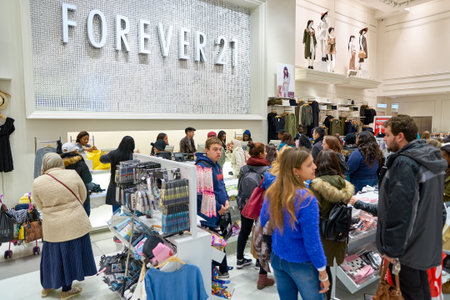 NEW YORK - MARCH 19, 2016: inside of Forever 21 in New-York. Forever 21 is an American chain of fast fashion retailers with its headquarters in Los Angeles.