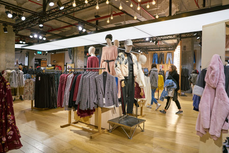 HONG KONG - CIRCA NOVEMBER, 2016: inside H & M store in Hong Kong. H & M Hennes & Mauritz AB is a Swedish multinational retail-clothing company, known for its fast-fashion clothing.