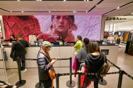 HONG KONG, CHINA - JANUARY 23, 2019: people staying in queue at Zara store in New Town Plaza. New Town Plaza is a shopping mall in the town centre of Sha Tin, Hong Kong.