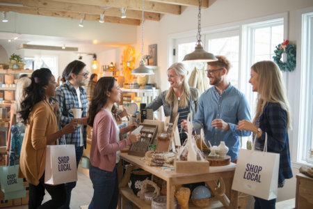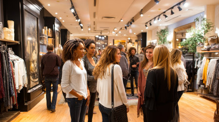 Friendly Group Shopping in a Cozy Boutique Store with Natural Lighting