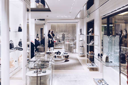 People visit Dior store in Milan. Dior is a Swiss luxury fashion house and home furnishings retailer