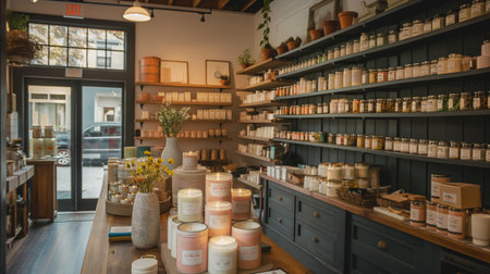 Inviting image of a cozy candle shop with neatly arranged shelves