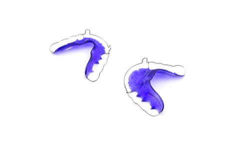 A pair of hawley retainer over isolated white background - orthodontic concept