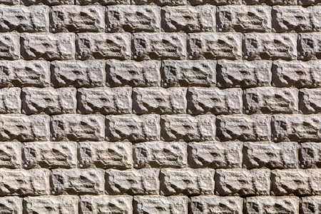 Decorative coating, texture. Rough natural stone is staggered. Thick concrete joints. Muted tones.