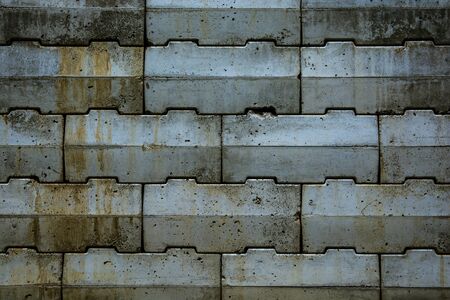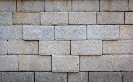 Background with gray construction bricks / blocks laying in a row on each other.