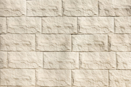 Vintage brick or besser block wall with white plaster, horizontal texture. Background of light modern contemporary interior wall
