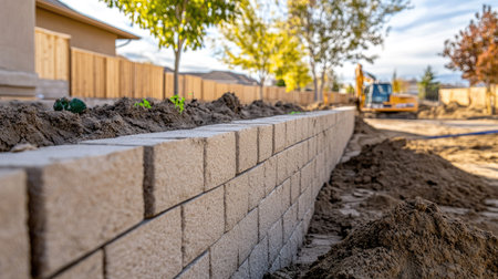 The foundation of the house is built of concrete blocks bricklaying new house wall