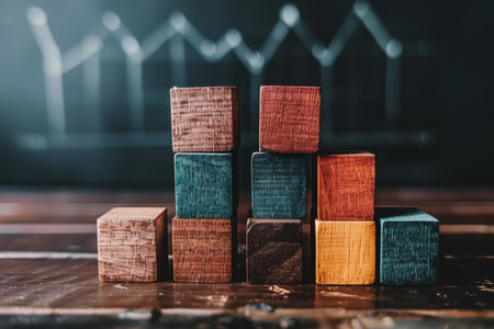 AI Generated. wooden blocks in black and brown arranged in an upward trend on a white surface