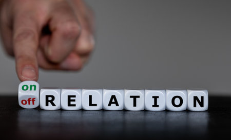 Symbol for on and off relationship. Dice forms the expression 'on relation' and 'off relation'.