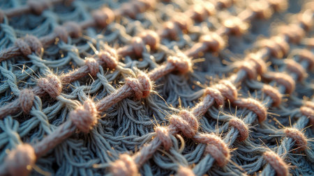 Close-up of knitted fabric with texture and warm sunlight. That the image is generated using AI.