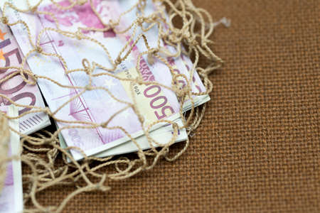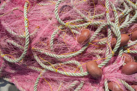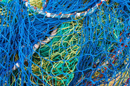 Fishing net close-up. Fishing equipment. Grid Industrial fishing.