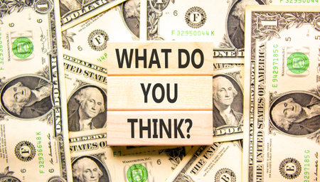 Support, help what do you think symbol. Concept words What do you think on beautiful wooden blocks. Beautiful dollar bills background. Dollar bills. Business what do you think concept. Copy space.