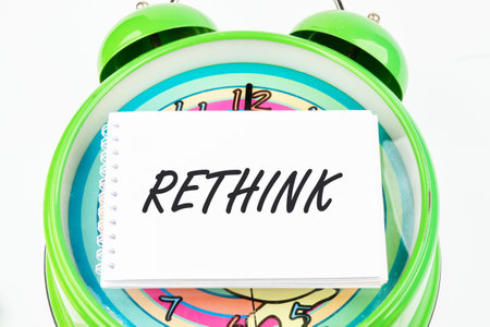 Rethink text with arrows isolated on white board background.