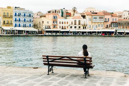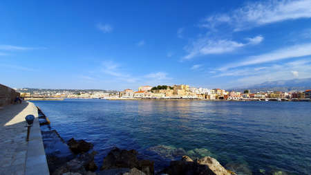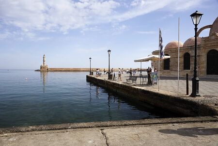 CHANIA, THE CRETE ISLAND, GREECE - MAY, 19, 2018: Chania picturesque harbor at the spring time