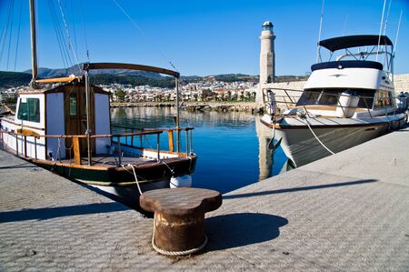 Boats docked in the old Venetian harbour of the city Rhetymno