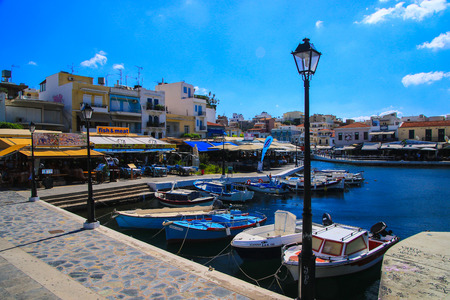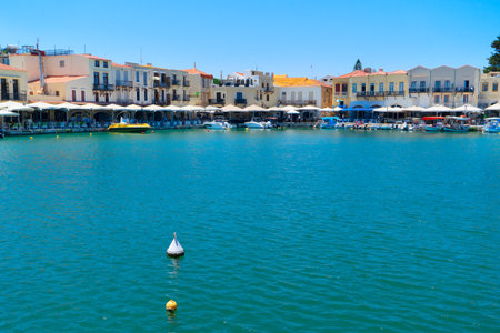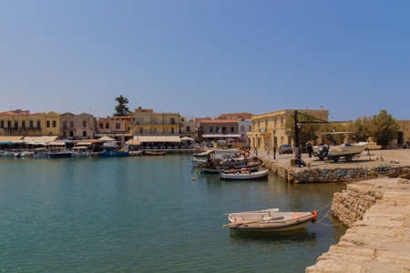 Rethymno, Greece - July 30, 2016: Venetian harbour. The Venetian Harbor of Rethymnon, next to the modern harbor of the city, with the Egyptian lighthouse is one of the most picturesque areas of the old town. It operated in the Byzantine period (after 961