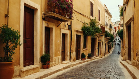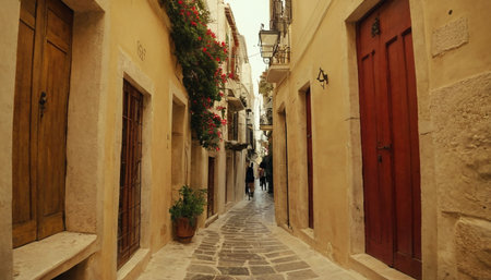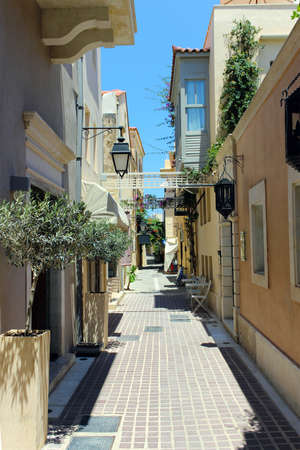 Old narrow street in the old city of Rethymno, Crete, Greece