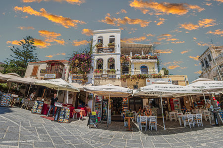Rethymno, Crete island / Greece - May 28 2019: Charming old town Rethymno in Crete in Greece