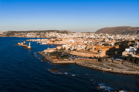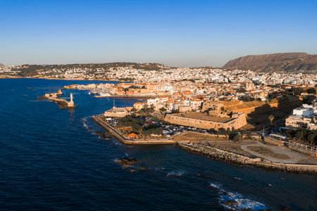 Aerial View of Rethymno Town, Venetian Harbor, and Fortezza in Crete