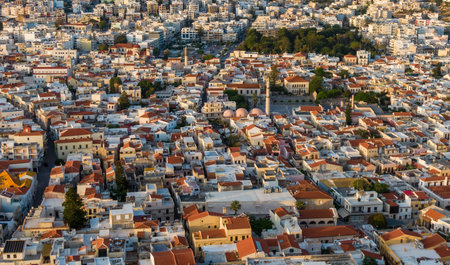 Aerial view of Rethymno city in Crete illuminated late in the afternoon