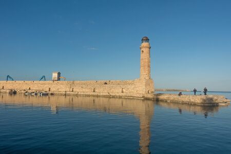 Rethymno, Crete, Greece. October 2019. The ancient lighthouse on the old historic Venetion Harbour at Rethymno, Crete.