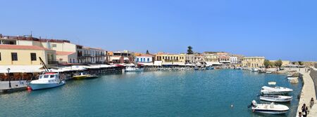 RETHYMNO, GREECE - 08.04.2016: old venetian harbour with boats panorama view