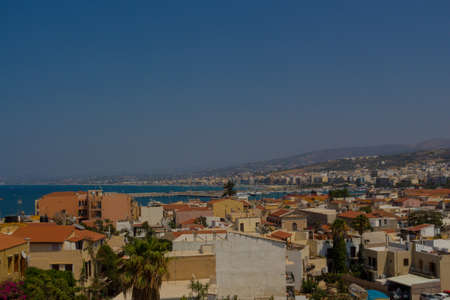 Rethymno, Greece - July 30, 2016: Panoramic view to Rethymno from the Venetian harbour. Rethymno is a city of approximately 40,000 people in Greece, the capital of Rethymno regional unit on the island of Crete.