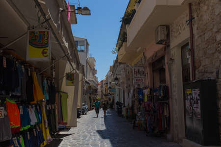 Rethymno, Greece. July 26. 2016: Shopping street. Rethymno is the 3rd largest city of the island. Crete attracts 2.8 million annual tourists (2011).