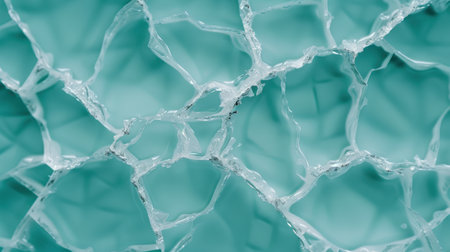 This image presents a close-up of a shattered glass pattern, featuring interconnected geometric shapes. The composition showcases cool blue and white hues with hints of yellow, suggesting reflected light. It could be used for backgrounds, textures, or illustrations, lending itself to editorial or design applications.
