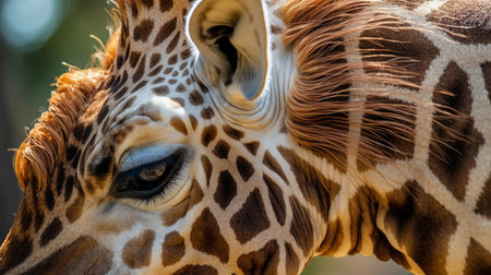 The spotted giraffe beauty in nature, close up portrait captured generated by artificial intelligence