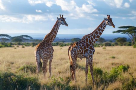 Giraffes standing on the African grasslands