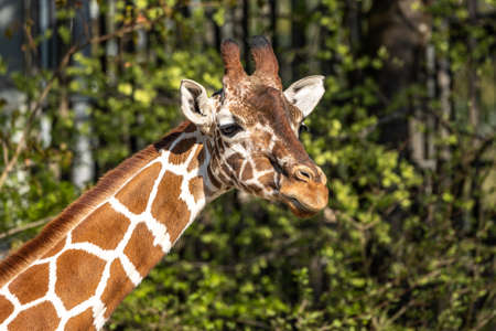 Reticulated Giraffe, Giraffa camelopardalis reticulata, Somali giraffe on the leaves background. Animals in der wild life
